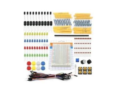 | Conteúdo da Embalagem | 01- Protoboardo 400 Pontos01 - Kit Jumper Premium Macho xMacho - 30 Fios01 - Barra de pinos Macho 1x40 2,54mm02 - Chave Push botton - Capa azul02 - Chave Push botton - Capa amarela02 - Chave Push botton - Capa branca02 - Chave Push botton - Capa vermelha10 - Resistor 100R 1/4w10 - Resistor 220R 1/4w10 - Resistor 330R 1/4w10 - Resistor 1K 1/4w10 - Resistor 4K7 1/4w10 - Resistor 47K 1/4w10 - Capacitor Ceramico 100PF/50V10 - Capacitor Ceramico 10NF/50V10 - Capacitor Ceramico 100NF/50V10 - Capacitor Ceramico 2,2NF/50V10 - Capacitor Eletrolitico 10UF/50v10 - Capacitor Eletrolitico 470UF/25V10 - Led difuso Azul 5mm10 - Led difuso Amarelo 5mm10 - Led difuso Verde 5mm10 - Led difuso Vermelho 5mm02 - Led RGB 4 Terminais02 - Buzzer 12mm01 - Trimpot 3296W - 10K01 - Caixa organizadora - BOX |